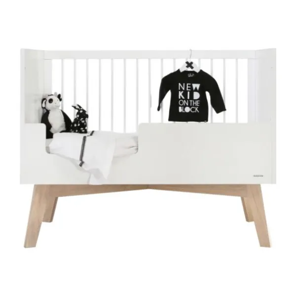 Met het Sixties babybed 60 x 120 cm haal je stijl in huis. Het ledikant is ontworpen met oog voor design en wordt geleverd inclusief een peuterzijde zodat je kindje later zelfstandig en veilig uit het ledikantje kan klimmen. De blanke eiken pootjes maken het ledikant echt uniek. Standaard wordt een lattenbodem meegeleverd en voldoet het ledikant aan de Europese veiligheidsnormen.