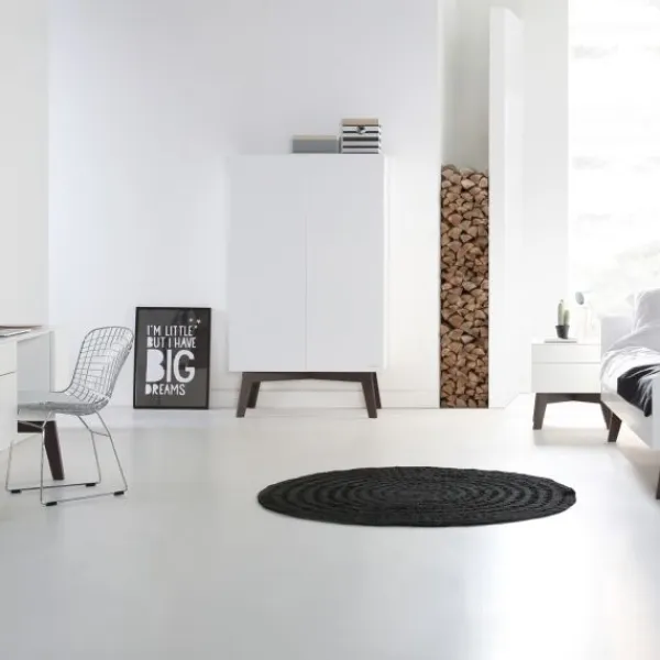 Met de Kidsmill Sixties Kinderkamer haal je stijl en design in huis. De meubels van de kinderkamer Sixties zijn strak en tot in de kleinste details afgewerkt. De witte delen zijn gemaakt van hoogwaardig MDF materiaal en de bruine pootjes zijn gemaakt van grenenhout. Alle bewegende delen zijn voorzien van het handige “Push open” systeem.