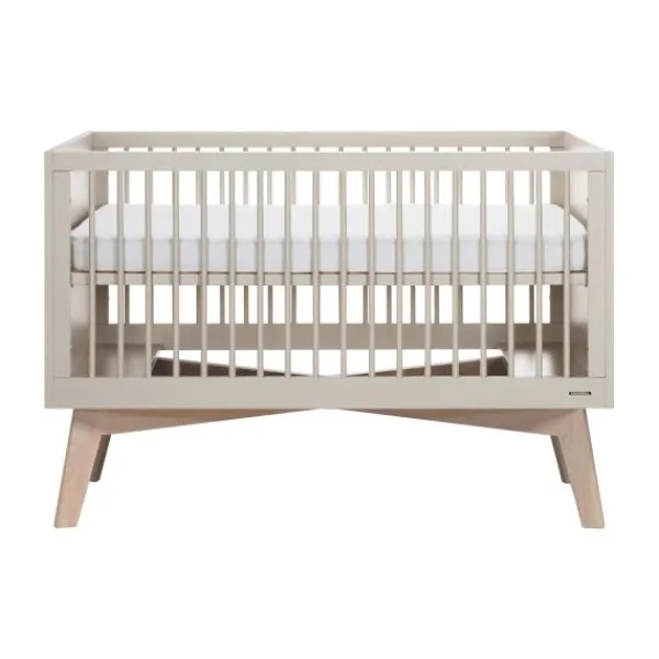Met het Kidsmill Sixties Ledikant 70 x 140 cm – Oatmeal / Eiken haal je stijl in huis! Het ledikant heeft een strak en modern design en is voorzien van stijlvolle eiken pootjes, waardoor het ledikant goed binnen verschillende babykamerinterieurs past. De bodem van het ledikantje is verstelbaar in drie verschillende hoogtes, zo ligt je kindje altijd op de juiste hoogte in het ledikantje. Dit ledikant heeft een stevige constructie en biedt voldoende ruimte voor je baby om veilig te slapen en te groeien. Daarbij wordt het ledikantje geleverd inclusief een juniorzijde, zodat je kindje later zelfstandig en veilig uit het ledikantje kan klimmen. Verder wordt er standaard een lattenbodem meegeleverd en voldoet het ledikant aan de Europese veiligheidsnormen.