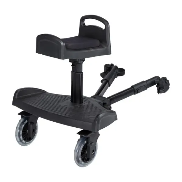 Met dit Kidsriver Universeel Meerijdplankje Met Zitting kan je zonder zorgen op pad met je kindje. Je kan het plankje eenvoudig bevestigen aan de kinderwagen of buggy en het zit niet in de weg tijdens het lopen. Het plankje is ideaal voor mensen die meerdere kinderen hebben, waarvan het ene kind op met meerijdplankje staat en het andere kind in de kinderwagen zit. Wanneer je kindje vermoeid raakt van het lopen, kan hij of zij rustig bijkomen op het meerijdplankje met zitje. Zo kan je langere stukken afleggen met de kinderwagen. Als je kindje liever op het plankje staat, dan verwijder je gemakkelijk het zitje.