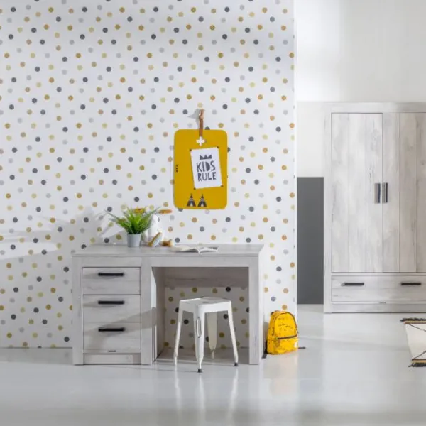 De Kinderkamer Sem Nautic Grijs bestaat uit een bedbank met lade van 90×200 cm en een praktisch bureau met drie opbergladen. Hier kan je kindje mee vooruit! Het bureau is een prettige werkplek en een opbergruimte ineen. De hoogte en afmetingen zijn zo op elkaar afgestemd dat je kindje elke dag weer comfortabel achter het bureau kan zitten. De meubels zijn gemaakt van hoogwaardig en stevig materiaal en gaan jaren mee.