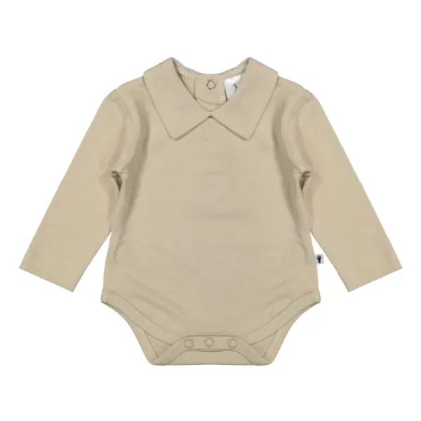 Klein Baby Oxford Tan Romper Met Kraag – Lange Mouw – Mt. 50 – Beige