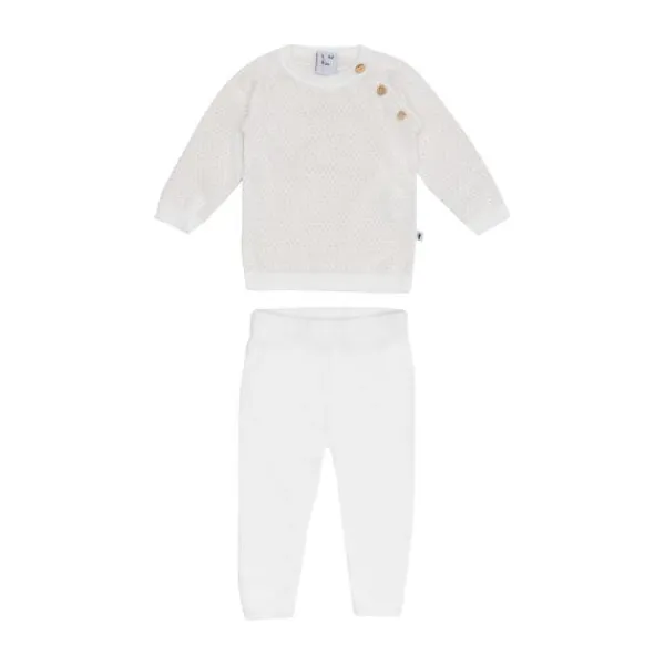 De Klein Baby Pakje – Knitted – Mt 50 – Natural White is gemaakt van hoogwaardig materiaal wat comfortabel aanvoelt. De set bestaat uit een broek en een trui en is verkrijgbaar in verschillende kleuren. Verder beschikt de trui over knoopjes, waardoor de trui eenvoudig aan- en uit te trekken is. Het broekje beschikt over een elastische taille band, waardoor het broekje altijd mooi aangesloten zit.