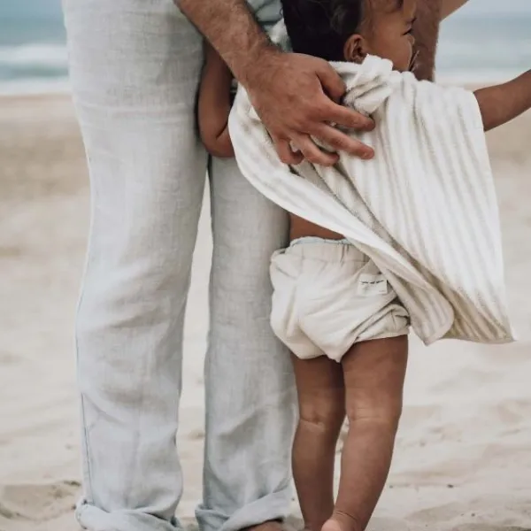 De Koeka Badponcho – Playa – Maat 74/80 – Sand is een stijlvolle en praktische oplossing voor na het zwemmen of badderen. Deze zachte poncho met capuchon is ideaal om je kindje snel warm en droog te houden. Gemaakt van heerlijk zachte badstof en voorzien van een subtiel streeppatroon in een warme zandkleur, is dit een echte musthave voor thuis, op vakantie of een dagje strand.
