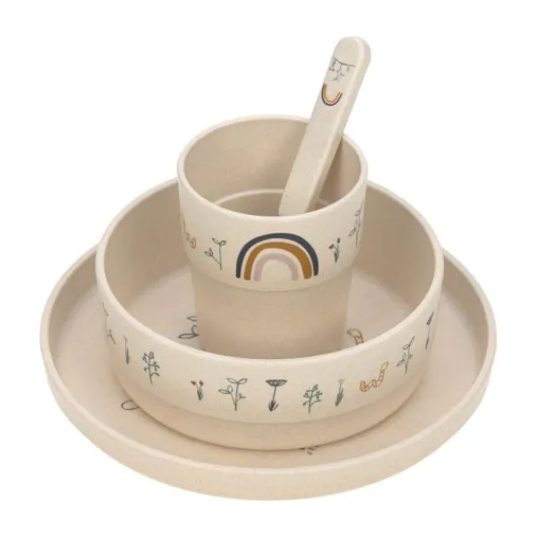 Met de Lässig Garden Explorer Dinerset heb je een een complete set voor je kindje. De set bestaat uit een bordje, mokje, kommetje en een lepel voor kleine maaltijden. Alle items zijn voorzien van een leuk printje. Verder is deze leuke set gemaakt van hoogwaardig materiaal en zijn er aan de onderkant siliconen antislipgrepen bevestigd, die ook makkelijk te verwijderen zijn.