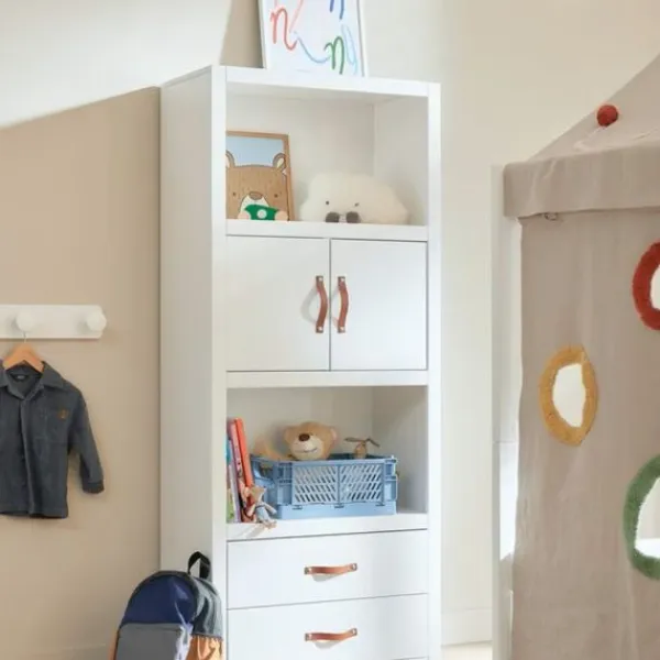 De LIFETIME Boekenkast – Wit – 4 Vakken is een praktische opberger met een strak en tijdloos design. Dankzij de vier ruime vakken is er volop plaats voor speelgoed, boeken en accessoires – ideaal voor de kinderkamer of speelhoek. De kast is gemaakt van massief grenenhout en MDF en is afgewerkt met een milieuvriendelijke witte lak. Je kunt de kast uitbreiden met losse deuren of lades in verschillende kleuren voor extra opbergruimte en een persoonlijke uitstraling. Makkelijk schoon te maken en bestand tegen dagelijks gebruik.