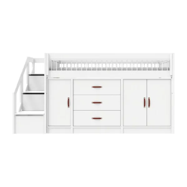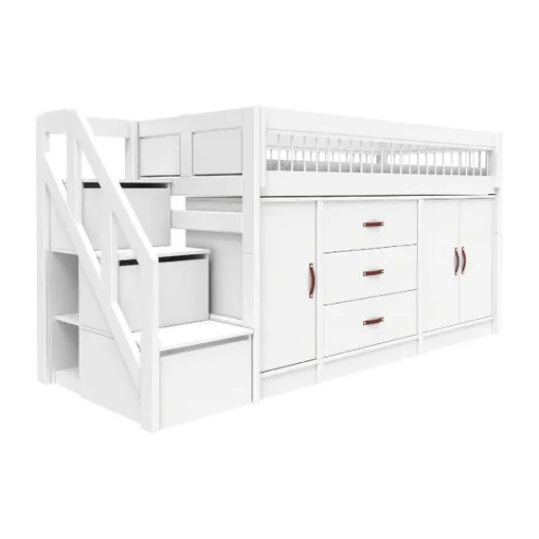 De LifeTime Breeze Halfhoogslaper – All-In-One – Luxelattenbodem is een praktische oplossing voor wat kleinere kamers. Onder het slaapgedeelte bevind zich een uitgebreid opbergsysteem dat kan dienen als kledingkast. Door middel van de trap kan je kindje in bed klimmen. De handgrepen zijn niet inbegrepen, dus je kan zelf kiezen welke handgreep je mooi vindt. Deze hoogslaper is onderdeel van de Breeze collectie. Deze collectie kenmerkt zich door het open design met spijlen aan de bedzijkanten en rugleuning van het bed.