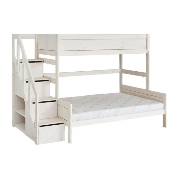 LIFETIME Kidsrooms Stapelbed Family met Trapkast Whitewash 140 x 200 cm