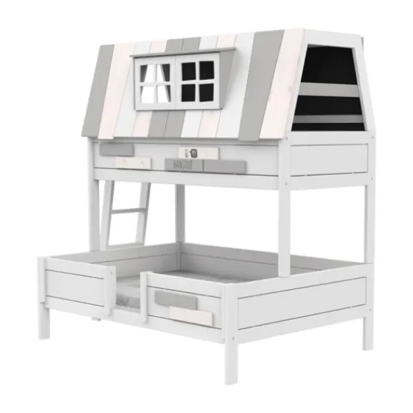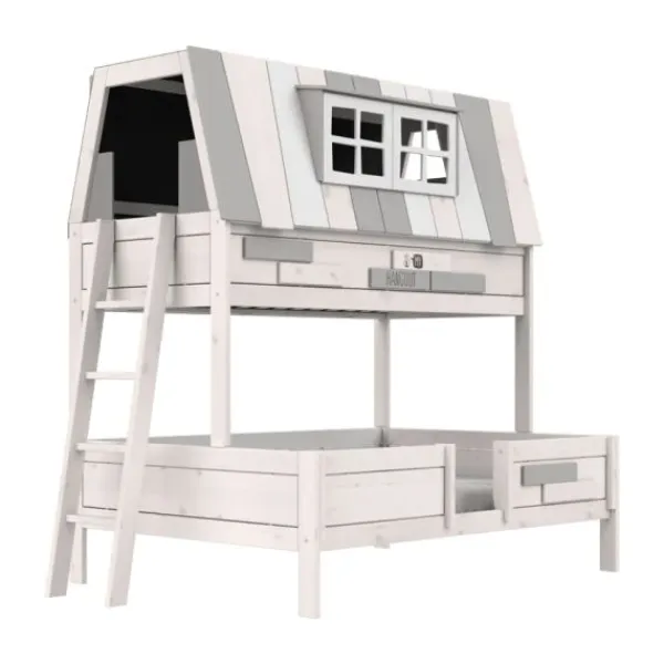 Het LIFETIME My Hangout Stapelbed – White Wash is een magisch huis- en stapelbed in één. Met ramen, dakconstructie en een speels uiterlijk voelt het als een echt huisje waarin kinderen zich kunnen terugtrekken, spelen en slapen. De ladder aan de buitenkant leidt naar het bovenste bed, dat fungeert als gezellige schuilplaats of speelzolder. Ondertussen biedt het onderste bed extra breedte (140 × 200 cm) voor extra comfort of logé’s.