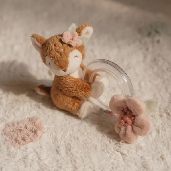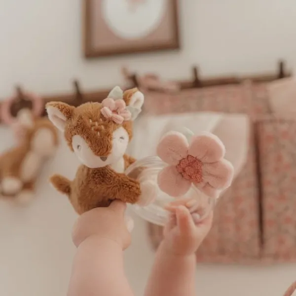 De Little Dutch Fairy Garden Ringrammelaar Hert is een vrolijk speeltje waar je kindje lekker mee kan knuffelen en spelen. De rammelaar is makkelijk vast te houden voor je kindje. Daarnaast is de ringrammelaar ook voorzien van een ring die perfect als bijtring kan dienen als de tandjes van je kindje doorkomen. Verder is de rammelaar gemaakt van hoogwaardig materiaal en voelt zacht aan.
