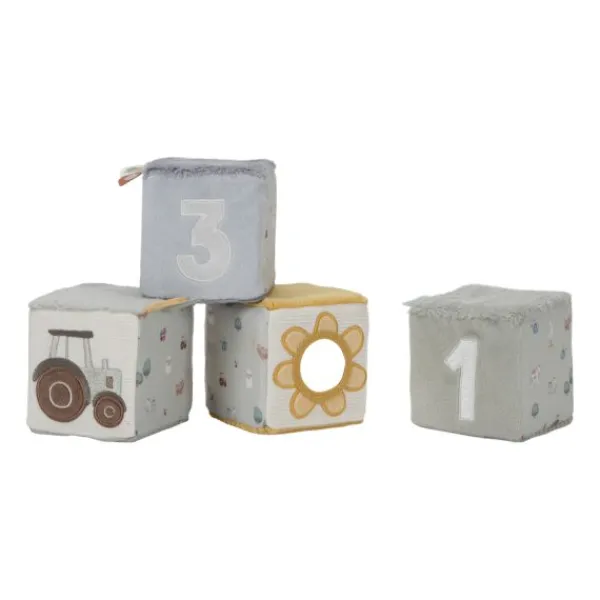 Met de Little Dutch Little Farm Blokkenset beleeft je kindje urenlang speelplezier! Deze 4 verschillende zachte blokken zijn voorzien van de cijfers 1 t/m 4, een spiegeltje en verschillende afbeeldingen uit de Little Farm serie. Ook kan je kindje de blokken stapelen en er een bouwwerkje van maken, zo ontwikkelt je kindje verschillende vaardigheden. Verder zijn de blokjes van Little Dutch gemaakt van hoogwaardig materiaal en veilig om mee te spelen.