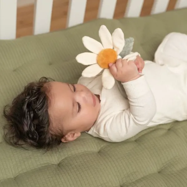De Little Dutch Little Farm Rammelaar Bloem is leuk als eerste speelgoed voor je kindje. Je kindje kan de rammelaar eenvoudig vasthouden. Als je kindje ermee rammelt komt er een leuk geluidje uit die je kindje interessant zal vinden. Daarnaast knispert het blaadje zodra je daar in knijpt. Verder is de rammelaar gemaakt van hoogwaardig materiaal en voelt heerlijk zacht aan.