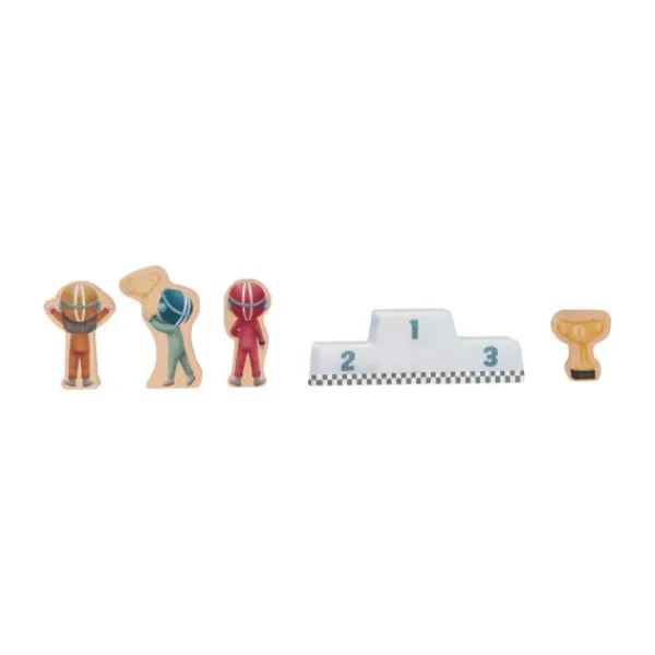 De set bevat alles om een echte race-ervaring na te bootsen: een houten racecircuit, kleurrijke raceauto’s, coureurs, een podium, finishboog en pitstop. Ook zijn er decorstukken zoals een tribune en een trofeeënkamer, waarmee de racewereld nog meer tot leven komt. Na afloop van het spel berg je alle onderdelen eenvoudig op in de stevige koffer, die je bovendien makkelijk meeneemt voor speelplezier onderweg.