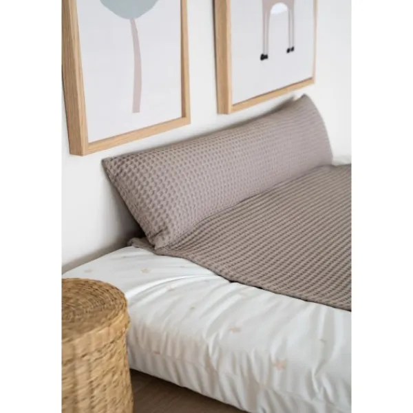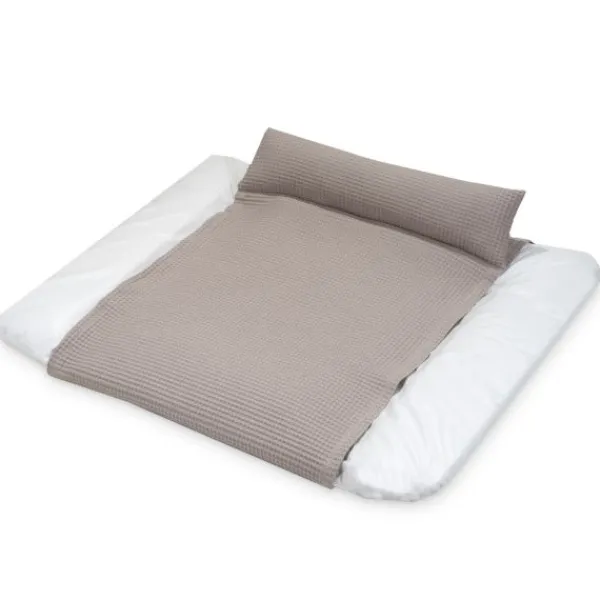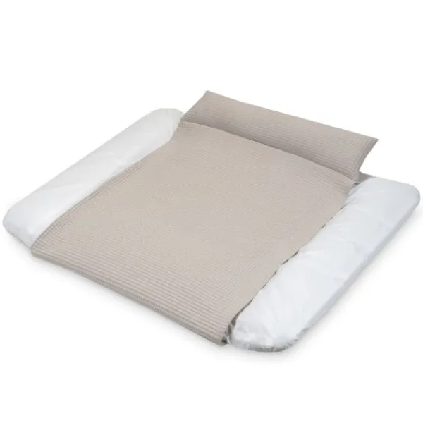 De hoes is gemaakt van 100% katoen met een ademende wafelstructuur die prettig en huidvriendelijk aanvoelt. Het extra gevoerde hoofdkussentje biedt bescherming tegen harde randen, zoals van de muur of commode, en zorgt ervoor dat je kindje comfortabel ligt. De zachte Seashell-kleur brengt een rustige en natuurlijke sfeer in de babykamer.