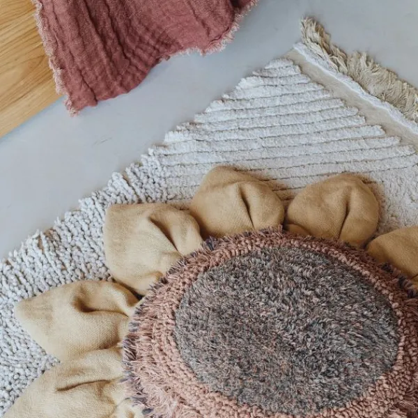 Met het Lorena Canals Vloerkussen – Sunflower haal je een vrolijke en speelse eyecatcher in huis. Dit handgemaakte kussen in de vorm van een zonnebloem is ideaal om op te loungen, lezen of spelen. De honingkleurige katoenen bloemblaadjes en de zachte, getufte kern in warme tinten geven het kussen een unieke en natuurlijke uitstraling die elke kamer laat opbloeien.Het vloerkussen is vervaardigd uit duurzaam katoen en met zorg met de hand gemaakt door ambachtslieden. Het materiaal voelt heerlijk zacht aan, is hypoallergeen en gemakkelijk schoon te maken. Dankzij het lichte gewicht is het kussen eenvoudig te verplaatsen en past het perfect in zowel de kinderkamer als de woonkamer. Combineer het met de andere items uit de boerderijcollectie van Lorena Canals voor een speels en harmonieus geheel.
