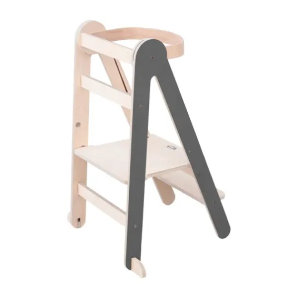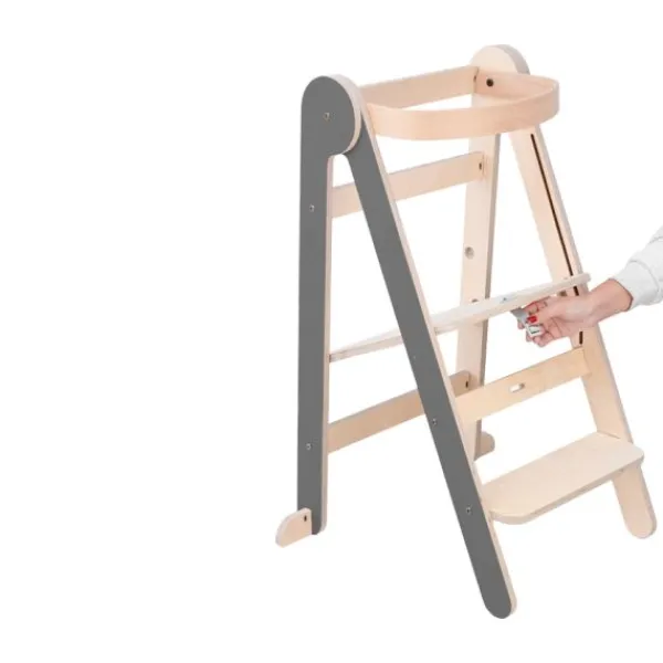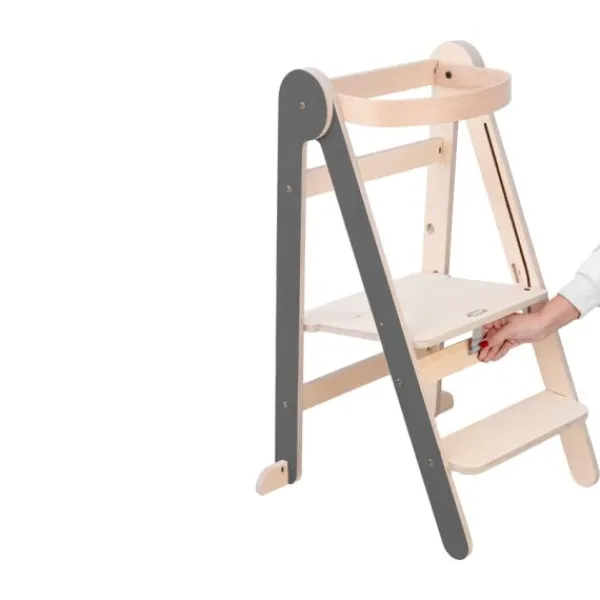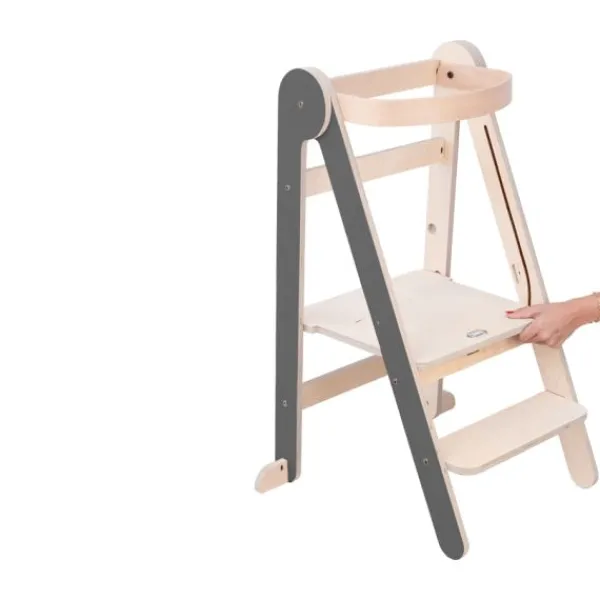 Met de Mamatoyz Leertoren – Grey Color – Hout staat je kindje veilig op hoogte en doet het spelenderwijs mee in de keuken. De leertoren is in hoogte verstelbaar en geschikt voor kinderen van 12 maanden tot ongeveer 5 jaar. Deze stevige houten leertoren heeft een moderne uitstraling en biedt dankzij het naar buiten openende onderstel extra stabiliteit. De toren weegt slechts 6 kg, is getest tot 50 kg en voldoet aan de EN 71-normen. Montage is eenvoudig en snel geregeld. Dankzij de handige vouwfunctie is de leertoren compact op te bergen en makkelijk te verplaatsen. Ideaal voor gezinnen met beperkte ruimte of voor gebruik in meerdere kamers.