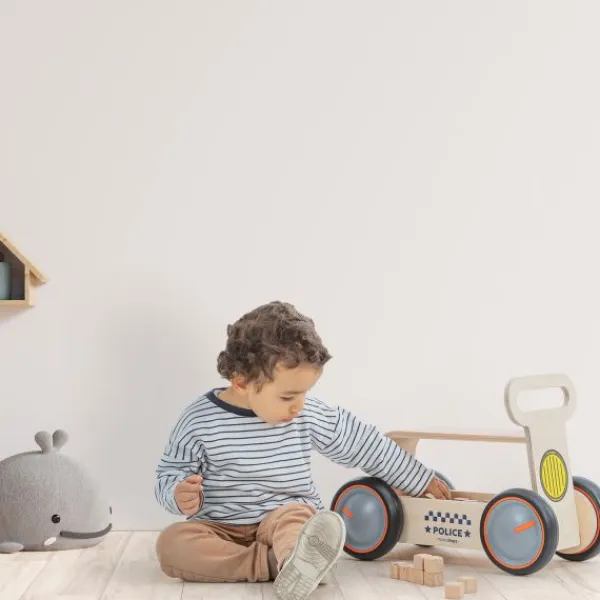 De Mamatoyz Politie Loopwagen geeft je kindje urenlang speelplezier. Dankzij de snelheidsregeling op de wielen kan je kindje veilig de eerste stapjes zetten. Je kindje kan zitten op het afneembare kussen. Verder is de loopauto gemaakt van natuurlijk houtmateriaal. Ook draagt deze loopwagen bij aan de evenwichtsontwikkeling van je kindje.