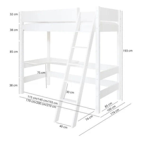 - – Hoogslaper met ruimte onder het bed voor bureau, opberging of speelplek