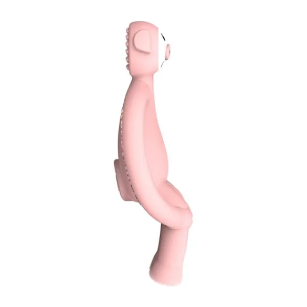 Deze Matchstick Monkey Varken Bijtring is perfect wanneer de tandjes van je kindje beginnen door te komen! Het lichtgewicht speeltje is voorzien van een ergonomisch ontwerp zodat het makkelijk vast kan worden gehouden met kleine kinderhandjes. Doordat je kindje op het soepele speeltje kauwt en sabbelt wordt het tandvlees zachter en de pijn verlicht. Aan de achterkant van de dino zitten bobbels waar je een verdovende gel, olie of zalf op kan smeren zodat dit direct op de pijnlijke plekken aankomt. Verder is de Matchstick Monkey bijtring BPA-vrij, niet-giftig, milieuvriendelijk en gemaakt van FDA goedgekeurde siliconen van voedingskwaliteit.