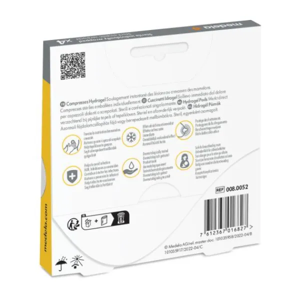 De Medela HydroGel Pads – 4 Stuks bieden directe verlichting bij pijnlijke tepels en tepelkloven. Dankzij hun verkoelende werking verzachten ze het ongemak en bevorderen ze het herstel van de huid. De pads zijn individueel verpakt, voorgesteriliseerd en comfortabel te dragen onder je bh, zelfs onder strakke kleding. Voor extra verkoeling kun je de pads in de koelkast bewaren. Ze zijn veilig in gebruik en helpen de huid sneller genezen tijdens de borstvoedingsperiode. Iedere pad is tot 24 uur bruikbaar.