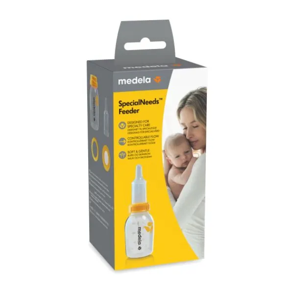 De Medela SpecialNeeds Feeder is speciaal ontworpen voor baby’s met voedingsuitdagingen, zoals bij een gespleten lip of neurologische afwijkingen. Dankzij de zachte, langwerpige speen kan de baby melk drinken door compressie in plaats van vacuüm. De eenrichtingsvacuümklep biedt zorgverleners volledige controle over de melkstroom en zorgt ervoor dat er geen lucht in de speen komt. De fles van 150 ml is herbruikbaar en eenvoudig te reinigen, ideaal voor dagelijks gebruik.