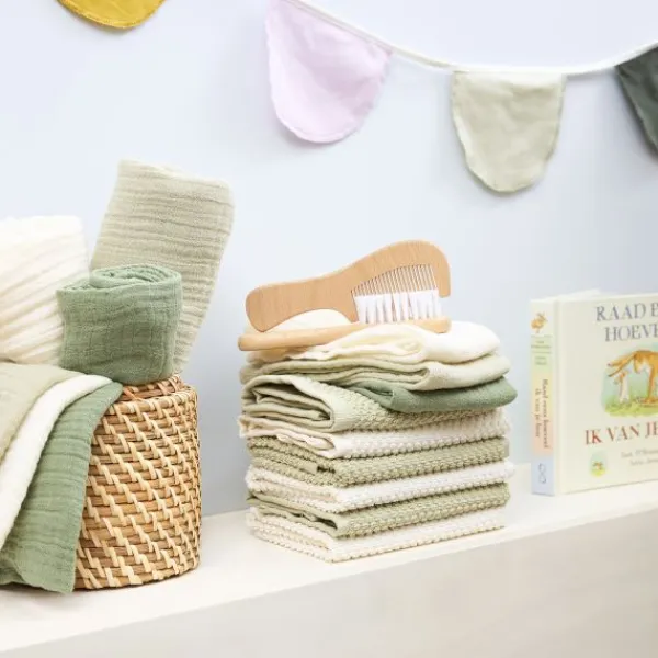 Meyco Baby Uni Monddoekjes – 3 Stuks – Pre-Washed Hydrofiel – 30 x 30 cm – Naturel/Soft Olive/Olive Green