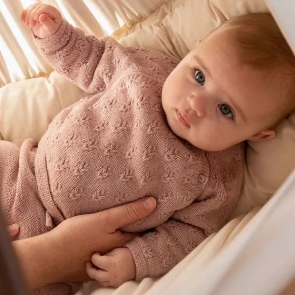 Het duurzame ontwerp met een walnoothouten kruispin en een 100% kapokgevuld matras zorgt voor optimaal comfort. De hangmat dempt harde geluiden en houdt fel licht tegen, waardoor je baby langer en dieper kan slapen. De meegeleverde veer past zich aan het gewicht van je kind (3-12 kg) aan, zodat de schommelbeweging altijd precies goed is.