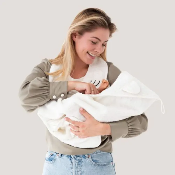 De Nifty Badcape White is erg handig en heeft een stijlvol design. Hoe werkt het? Sla voordat je kindje in bad gaat het pootje van de badcape over je schouder. Door de verzwaarde voetkussentjes blijft de badcape goed aan je schouder hangen. Hierdoor heb jij je handen vrij en kan je meteen je kindje warm inwikkelen als het net uit bad komt! De badcape voelt heerlijk zacht aan en is goed absorberend. Verder is de Badcape van het merk Nifty gemaakt van hoogwaardig materiaal.