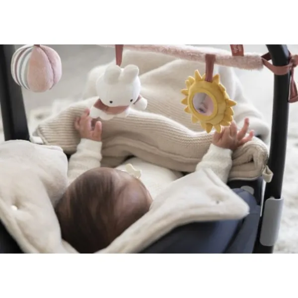 De Nijntje Fluffy Wagenspanner – Pink is voorzien van verschillende speeltjes waar je kindje mee kan spelen. De wagenspanner heeft kralen, ringen en blaadjes die je kindje uitdagen om er mee te spelen. De rustige kleuren zorgen er daarentegen wel voor dat je kindje niet teveel geprikkeld zal worden, zodat het ook rustig in slaap kan vallen in de kinderwagen. Verder is de wagenspanner van Nijntje gemaakt van hoogwaardig materiaal.