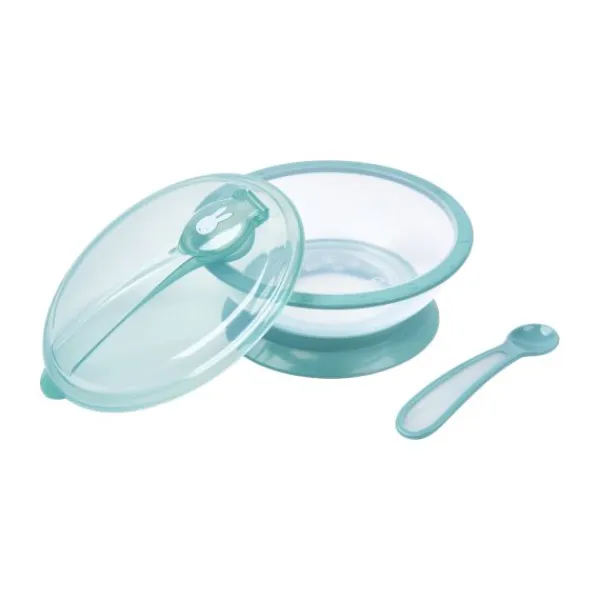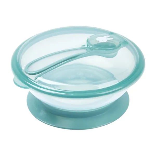 Met deze Nijntje Kom Met Zuignap Green leert je kindje sneller zelfstandig eten. Het kommetje zuigt zich stevig vast aan de ondergrond en kan dus niet op de grond vallen. Als ouder kun je het kommetje eenvoudig verplaatsen, maar voor je kindje is dit erg moeilijk. Het kommetje wordt geleverd inclusief een deksel en een lepel waardoor het ook erg handig is voor onderweg.