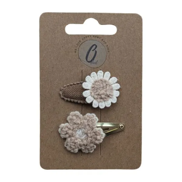 Ootje Kadootje Babyhaarclipjes – Bloem Bruin/Zand Bouclé – 2 stuks