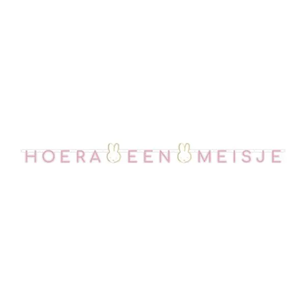De Ootje Kadootje Nijntje Letterslinger Meisje is voorzien van de tekst “hoera een meisje“. Deze letterslinger is heel geschikt voor de versiering van het huis bij de geboorte van een kind of een kraamfeest of babyshower. Met deze letterslinger maak je de decoratie compleet.