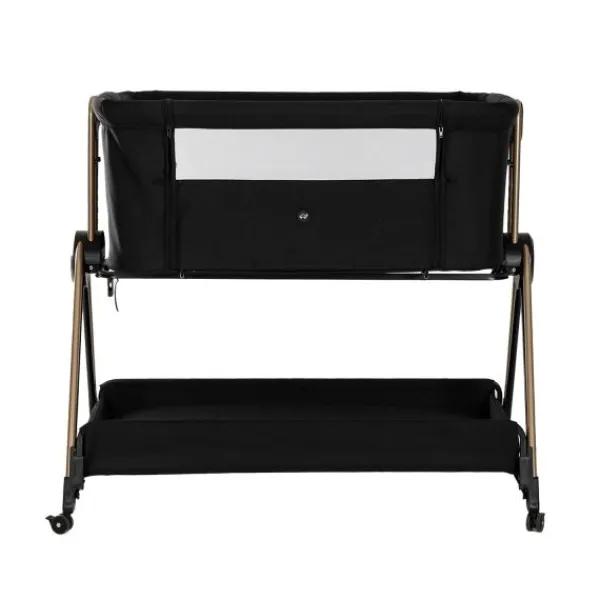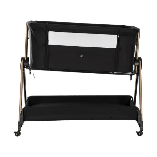 Deze Puck Claire Co-Sleeper – Zwart / Goud bevordert het slaapcomfort van je baby. Zo is de Co-sleeper verstelbaar in zes verschillende hoogtes. Daarbij is de co-sleeper voorzien van wielen met een remsysteem, hierdoor kun je de co-sleeper gemakkelijk tegen het bed aan plaatsten. Ook kun je het matras van de co-sleeper in een schuine positie plaatsen, doordat de hoogtes per zijde apart te regelen zijn. Slapen in een schuine positie, kan verzachtend zijn voor baby’s met een reflux of met een verborgen reflux. Daarbij is de co-sleeper voorzien van luxe matras met 3D fresh afwerking voor optimale ventilatie klap je de co-sleeper eenvoudig in, zodat je de co-sleeper gemakkelijk mee kan nemen!