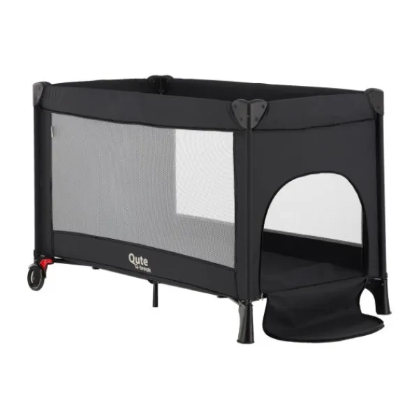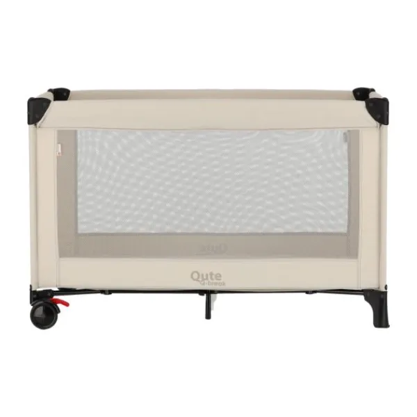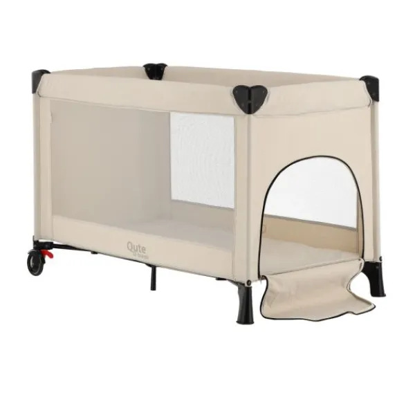 Het campingbedje is uitgerust met een handig kruipluik dat alleen van buitenaf te openen is. Dit maakt het mogelijk voor kindjes vanaf ongeveer 6 tot 8 maanden om zelfstandig in en uit het bedje te kruipen, zonder concessies te doen aan de veiligheid. Met vier brede pootjes en twee achterwielen is het bedje stabiel en gemakkelijk te verplaatsen, zelfs als het al is opgezet.