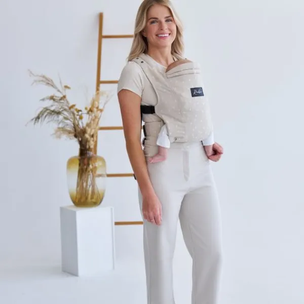De draagzak ondersteunt een gezonde M-houding en natuurlijke bolling van de rug. Extra padding bij de knieën en een zachte hoofdsteun zorgen voor maximale ondersteuning. Wissel eenvoudig tussen buik- en rugdragen dankzij de verstelbare X- en H-vormige schouderbanden. De hogere tailleband biedt extra steun, ook na een keizersnede.
