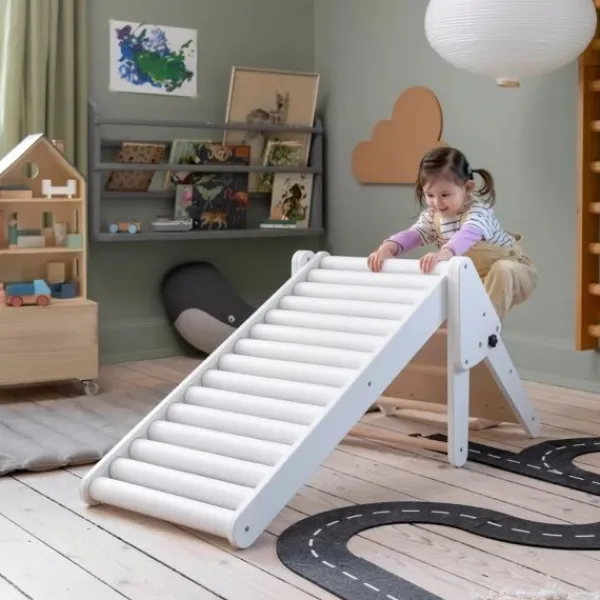 De Sebra Rol Glijbaan – Wit is een perfecte aanvulling voor de kinderkamer. De Glijbaan is voorzien van schuimrollen waardoor je kindje op een leuke manier het bed in of uit kan. De rolglijbaan kan eenvoudig bevestigd worden op het Sebra bed en de Sebra Klimdriehoek. De rol glijbaan is gemaakt van hoogwaardig materiaal.
