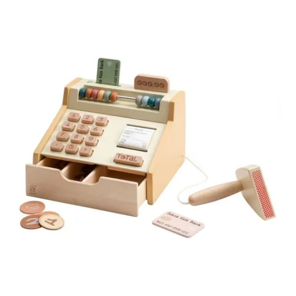 De Sebra Speelkassa is perfect voor kinderen die graag winkeltje spelen. Deze houten speelgoedkassa bevat alles wat nodig is voor realistisch en fantasierijk spel: knoppen met cijfers, een bonnetje, munten, een pinapparaat met pinpas en zelfs een stempeltje. Dankzij het tijdloze design en de zachte kleuren past hij mooi in elke speel- of woonkamer. Gemaakt van FSC™-gecertificeerd hout en ontworpen met oog voor detail en veiligheid. De kassa stimuleert rollenspel, rekenen en sociale vaardigheden. Een ideaal cadeau voor kinderen vanaf 3 jaar.