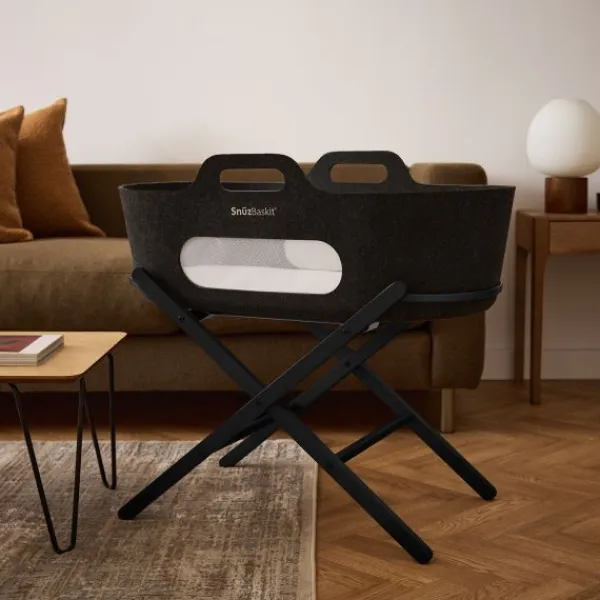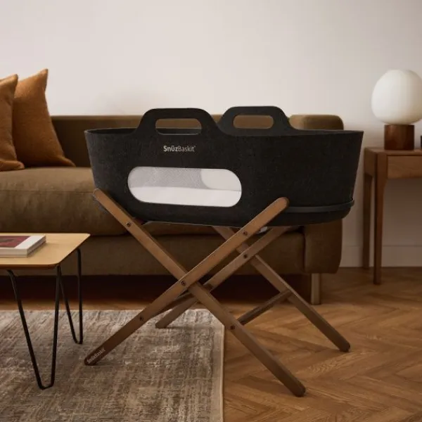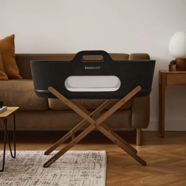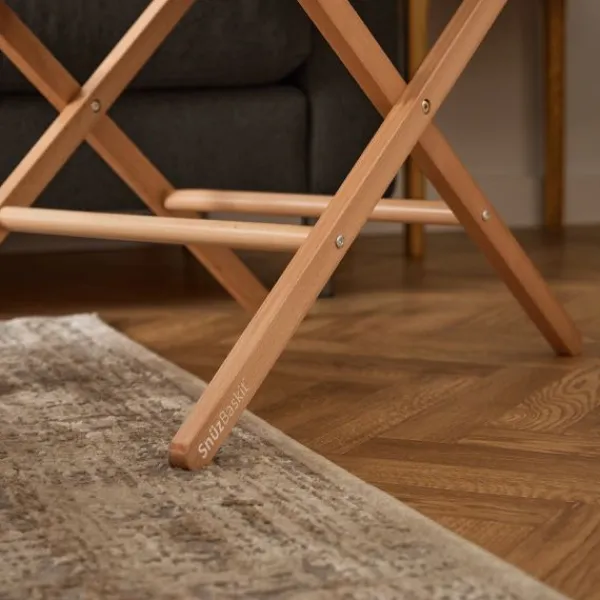 De SnüzBaskit wordt geleverd met een stijlvol bijpassend onderstel, gemaakt van hoogwaardig massief hout. Dit stabiele onderstel zorgt voor een veilige slaapplek en maakt het eenvoudig om de wieg overal in huis te plaatsen. Bovendien kun je kiezen uit verschillende kleuren en bekleding om de set perfect te laten aansluiten bij jouw interieur.