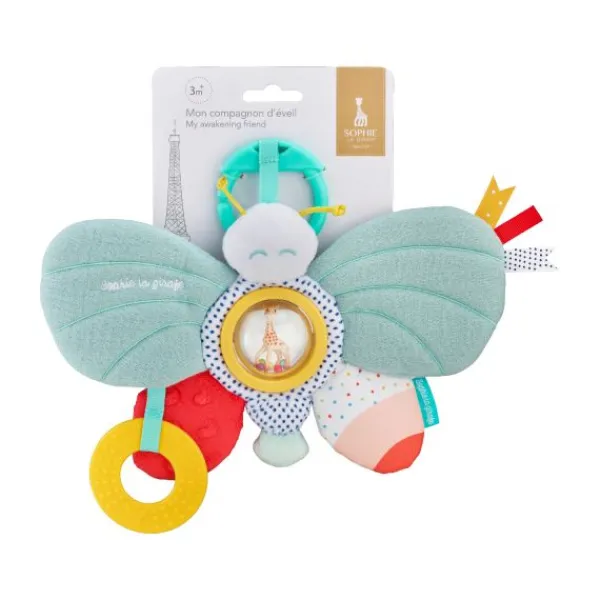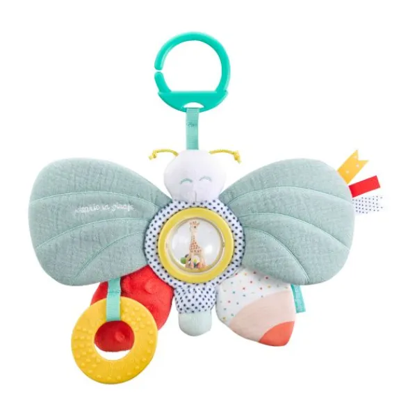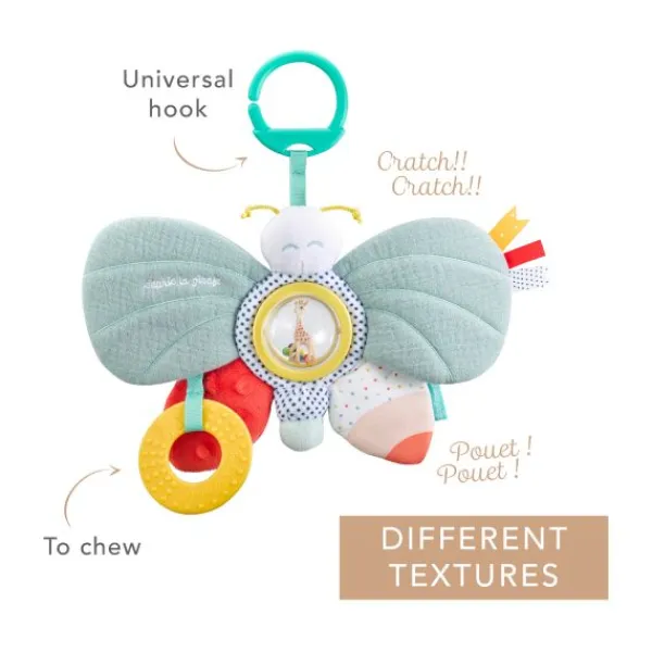 De Sophie de Giraf Activiteitenvlinder is ontworpen om je baby te vermaken en de zintuigen te stimuleren. Deze kleurrijke vlinder biedt verschillende zachte materialen en activiteiten om de fijne motoriek te ontwikkelen, zoals verfrommeld papier, belletjes, een piepje en een rammelaar. De contrasterende kleuren en patronen trekken de aandacht en prikkelen de nieuwsgierigheid van je kleintje.