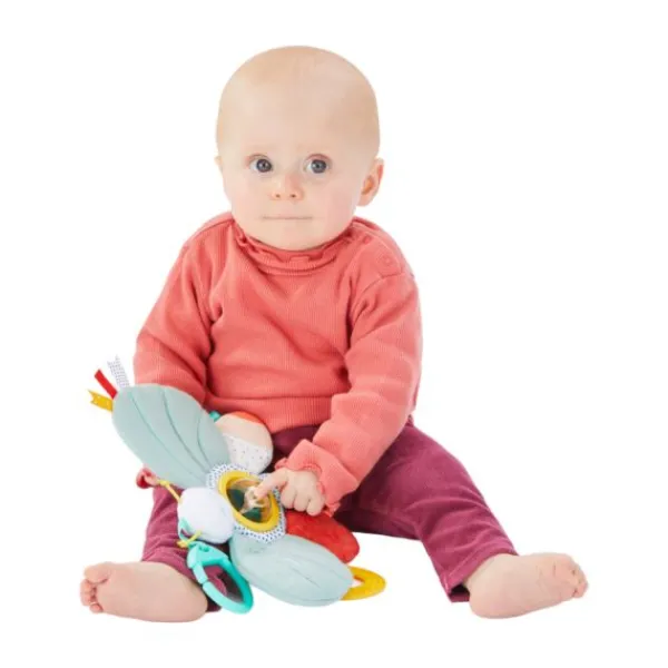 Voor extra comfort tijdens het doorkomen van tandjes is de activiteitenvlinder uitgerust met een bijtring om het tandvlees te verzachten. Dankzij de universele haak is de vlinder eenvoudig te bevestigen aan kinderwagen, wieg of autostoel, zodat je baby altijd speelplezier heeft binnen handbereik.