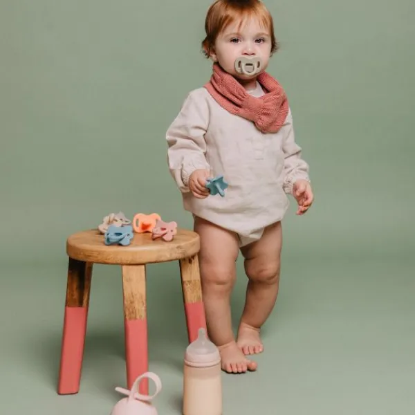 De speen is vervaardigd uit 100% medische silicone, wat zorgt voor een ultrazachte, flexibele en comfortabele sensatie in het mondje van je kindje. Het naadloze éénstuk‑design zonder naden of losse onderdelen maakt de speen extra hygiënisch en gemakkelijk schoon te maken. Dankzij het lichte gewicht blijft de speen prettig zitten zonder zwaar te voelen, zelfs bij actief gebruik.