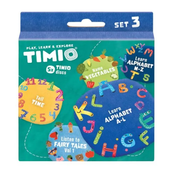 Het Timio Uitbreidingsset Audiospeler – Set 3 is geschikt voor de Timio Audiospeler. Het set bestaat uit 5 discs die verschillende thema’s bevatten. Je kindje kan hierop verhaaltjes, liedjes, verschillende talen en nog veel meer geluidjes horen.