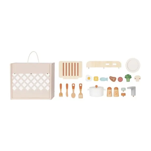 De Tooky Toy Speelkeuken Mini – Hout is een droomkeuken voor elke kleine chef! Deze compacte, draagbare speelkeuken is voorzien van een realistisch fornuis, pannenset en schattige kruidenpotjes waarmee je kindje de heerlijkste maaltijden kan bereiden. Dankzij het slimme, afneembare ontwerp is de set eenvoudig mee te nemen en overal te gebruiken – van de speelhoek tot het vakantiehuisje. De duurzame en kindvriendelijke materialen maken deze keuken niet alleen stevig, maar ook veilig in gebruik