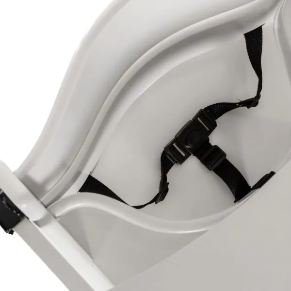 De kinderstoel is voorzien van een 3-punts gordel en voldoet aan de Europese veiligheidsnormen. De gordels zijn verstelbaar en zorgen ervoor dat je kindje niet zo gemakkelijk uit de stoel kan klimmen. Je kunt je kindje dus met een gerust hart in de kinderstoel laten zitten.