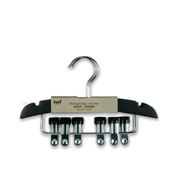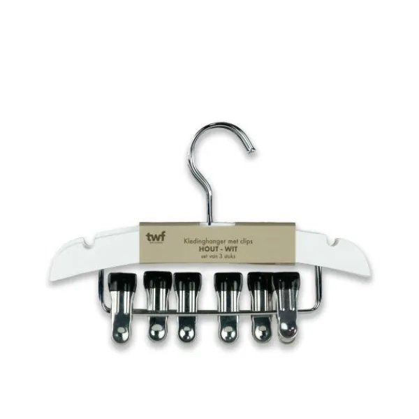 TWF Kledinghanger Met Clips – 3 Stuks – Hout Wit