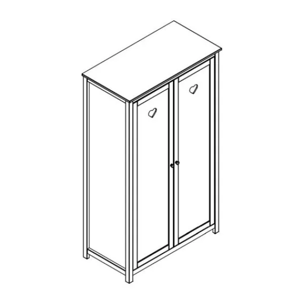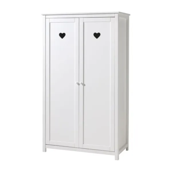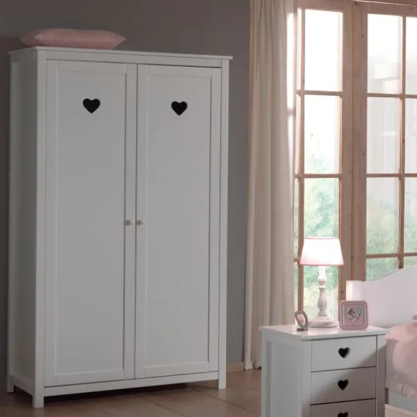 De Vipack Amori Kledingkast Wit 2-Deurs is een kwalitatieve kast in een romantische uitvoering. De kast is gemaakt van kwalitatief MDF en op de fronten van de deuren bevinden er geïntegreerde hartjes die deze serie kenmerken. De kast wordt geleverd met twee legplanken en een hangroede.