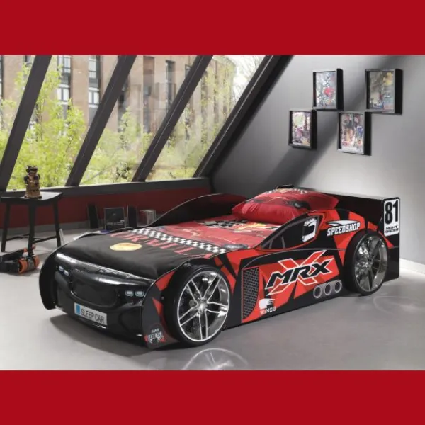 Het Vipack Autobed MRX Sleepcar Black 90 x 200 cm is een bed in een vorm van een zwarte sportwagen! Bestemd voor de jongen die van racen houdt! Je rijdt met een hele snelle vaart zo naar dromenland toe! Vervaardigd van MDF gelakt materiaal.