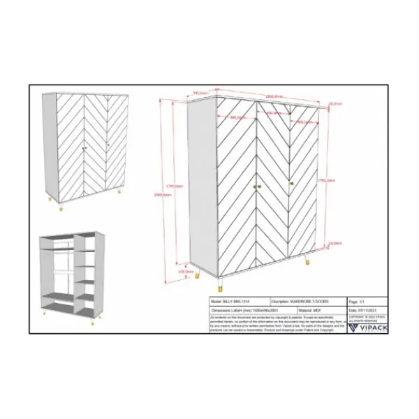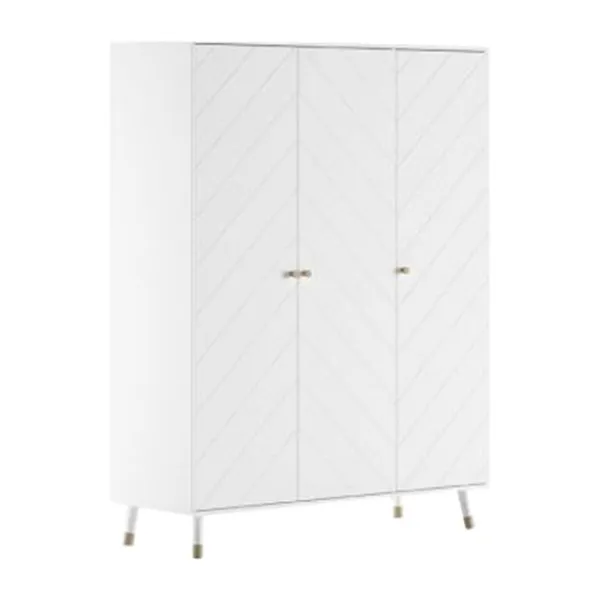 De Vipack Billy Kledingkast 3 Deurs – Wit is een stijlvolle kast voor op de slaapkamer van je kindje. De kast beschikt over 3 deuren, 2 legplanken en een roede. Ook is de kast voorzien van schuine pootjes en handvaten met een gouden afwerking. Ideaal voor het opbergen van kleding en andere spulletjes van je kindje. Verder is deze kast leuk te combineren met andere meubels uit de Billy serie van Vipack