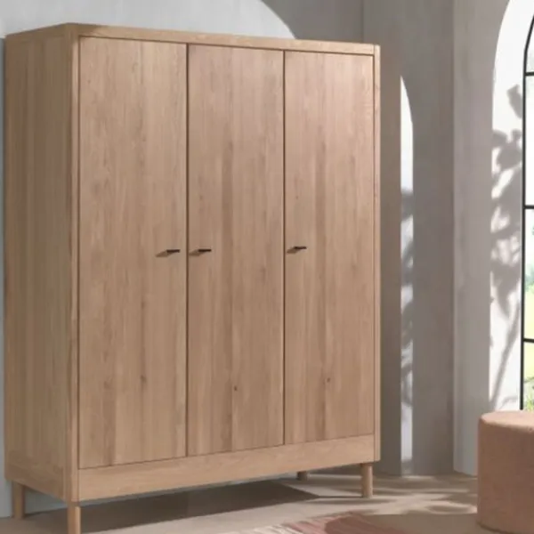 De Vipack Kleerkast 3-Deurs – Forrest Beuk – Wit is een stijlvolle en praktische kast die veel opbergruimte biedt voor kleding en accessoires. De kast is gemaakt van massief beukenhout en afgewerkt in fris wit, waardoor hij perfect aansluit bij zowel moderne als klassieke interieurs. Dankzij de stevige constructie is deze kast een duurzame keuze die jarenlang meegaat. De indeling is ruim en functioneel: achter de linkerdeuren vind je twee legplanken en een kledingroede, ideaal voor jurken, shirts en jassen. Achter de rechterdeur bevinden zich vier legplanken voor het netjes opbergen van beddengoed, schoenen of accessoires. De soft-close scharnieren zorgen ervoor dat de deuren altijd zacht en geruisloos sluiten. Met zijn frisse uitstraling, praktische indeling en robuuste ontwerp is de Forrest kleerkast een perfecte aanvulling voor elke kinderkamer of slaapkamer.