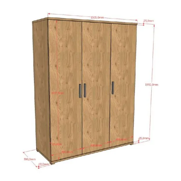 Vipack Sam 3-Deurs Kledingkast – Eik